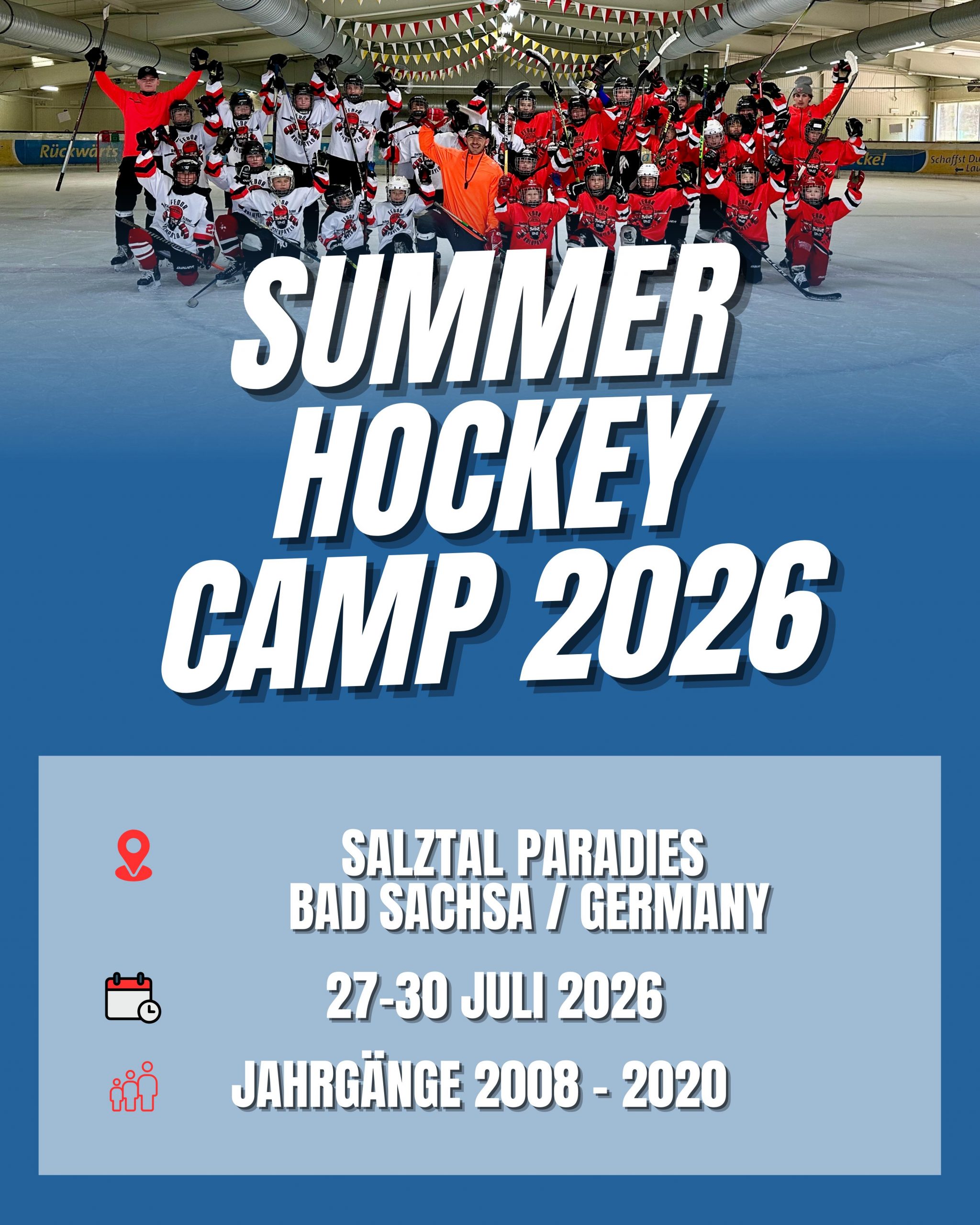 Ihr möchtet euer personalisiertes Trikot mit eurem eigenen Namen und eurer eigenen Nummer, sowie eine Extra Portion Energie? Dann bucht unser Campbundle für 2026 direkt mit.